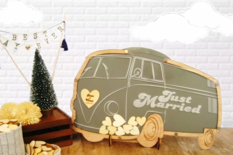 [旅行小巴士 木制婚礼签到盒]