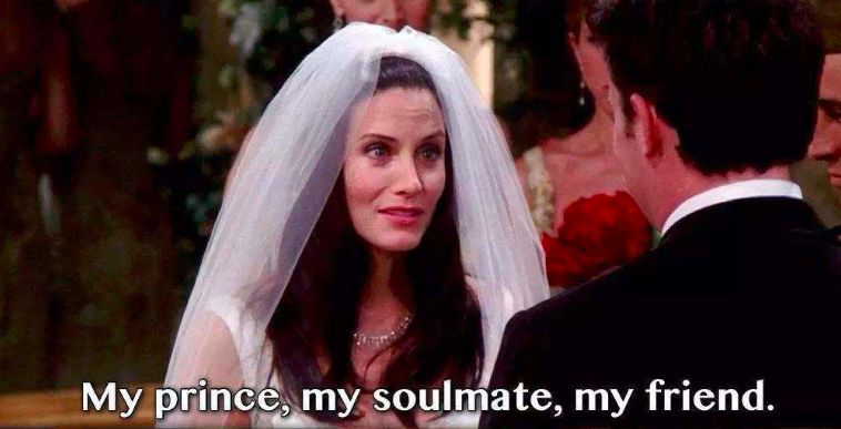 比如《老友记》中,Monica和Chandler的婚礼上,两人对对方那一段爱的告白: