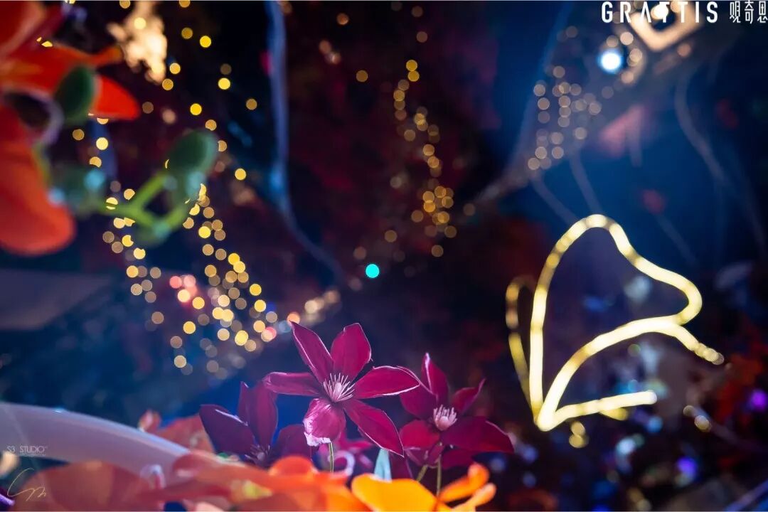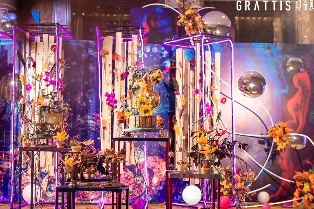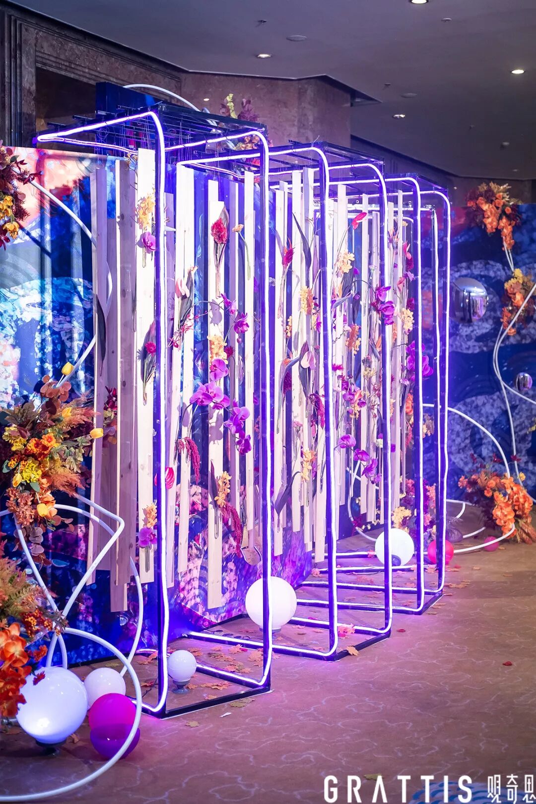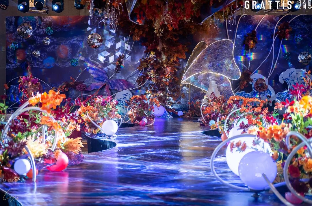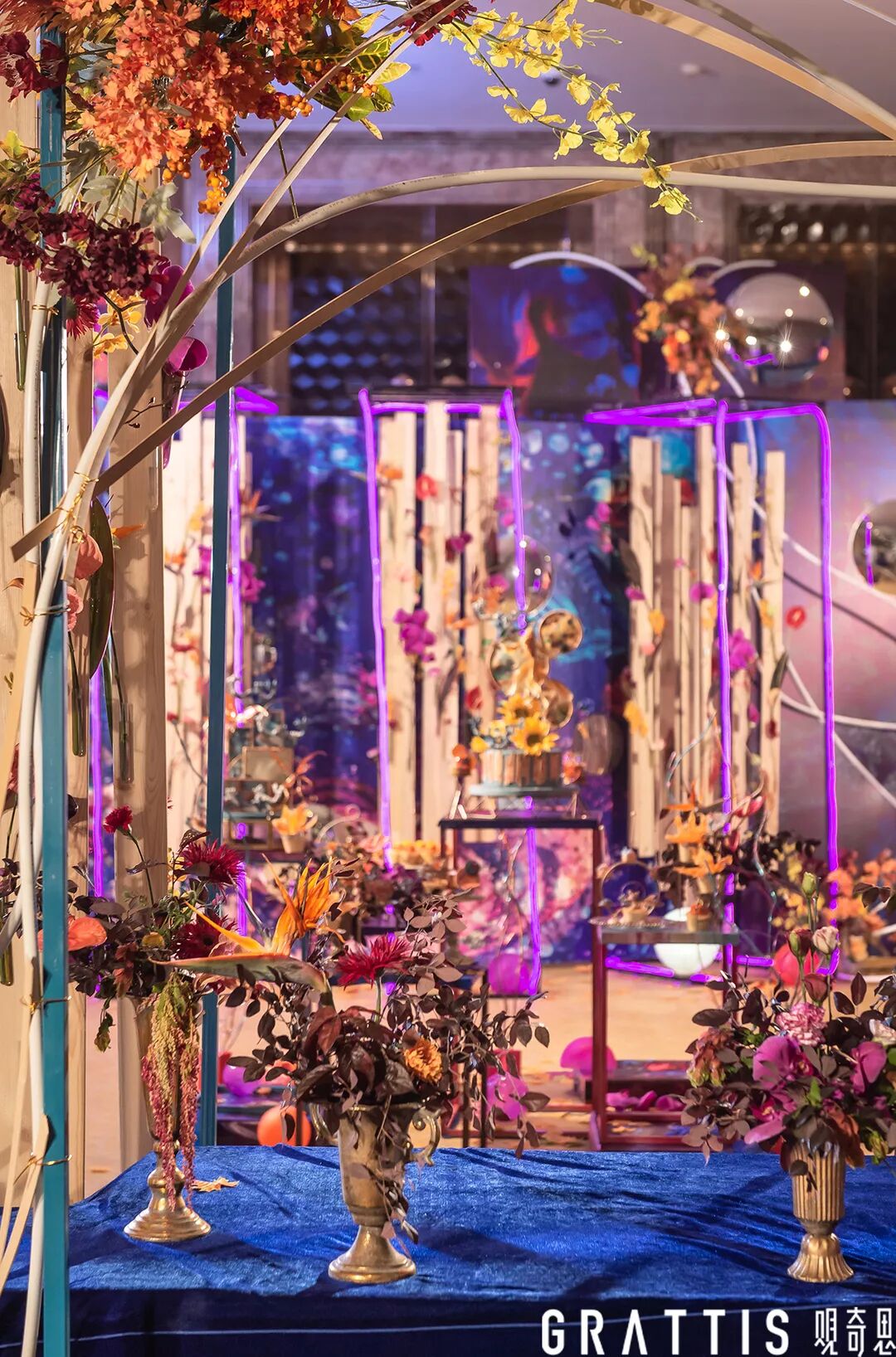 沉醉于迷幻色彩所带来的的视觉体验,这场婚礼用从「实花美学」中得到的感悟为主人公打造专属的色彩空间。