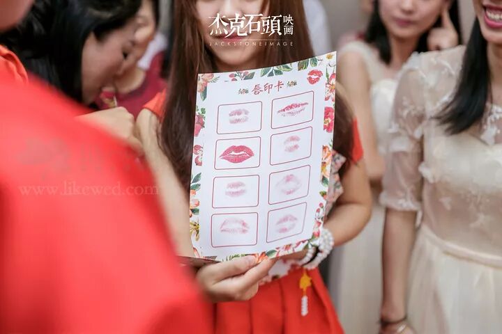 找唇印这个就要考验男孩子平时细不细心了。不如新郎们在婚礼前就每天要一个吻,先练习着。