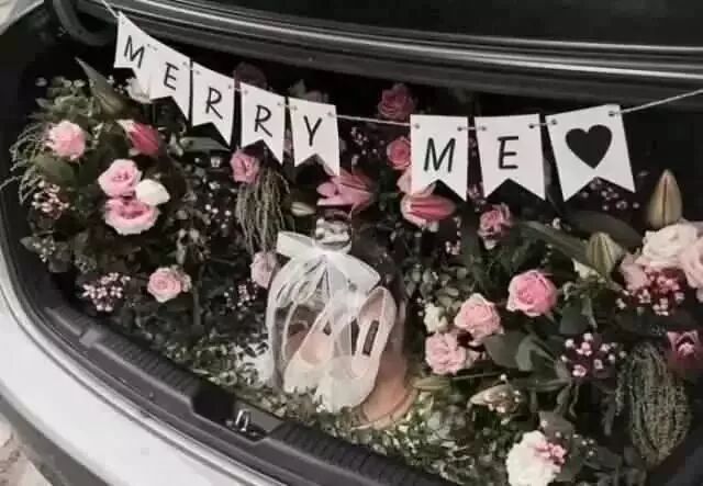 假设一下,一天下班男友接疲惫的你回家,在停车场让你去后备箱拿东西,一打开车厢发现居然是鲜花簇拥着一双“水晶鞋”!当然,还有一句MARRY ME!而男友则在一旁窃笑看着你~