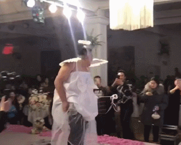 如果伴郎穿成小天使的样子,保证现场气氛超赞,让新人接受来自天使的祝福。