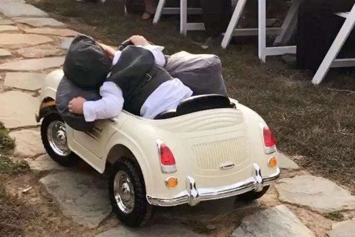 甚至可以让小朋友坐在玩具车里,将婚戒送到新人手中,只是要小心他们在车上睡着咯