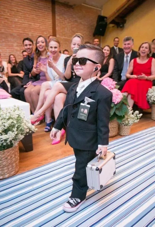 觉得过于普通的,可以让小朋友穿成大人的亚子,西装革履,手拿保险箱,妥妥一个小保镖,看起来可靠又可爱,还充满了趣味和创意!