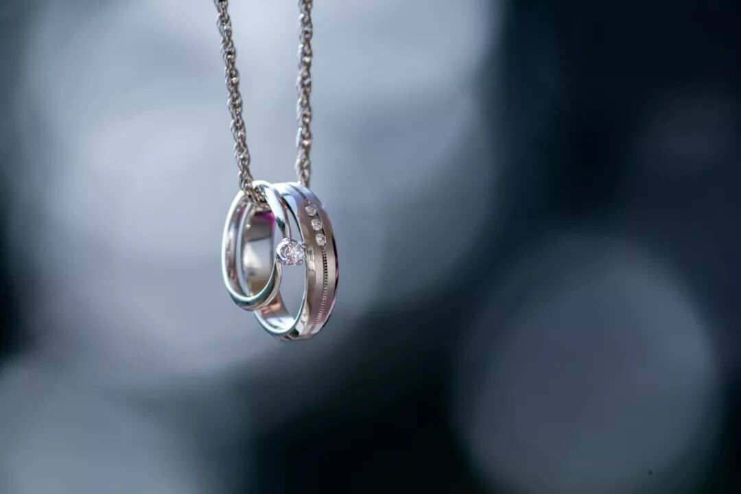 两人在婚礼前,事先将婚戒串好,戴在脖子上,等仪式开始,再互相取下。