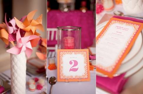 为餐桌的中心花饰上加一些瑰丽的羽毛,羽毛的颜色可以选择柔和的乳白色或典雅的象牙色;颜色艳丽的羽毛,最得当的夸大色彩主题的婚礼。可能选一些彩色的羽毛,用丝带在下面绑上写有来宾名字的卡片,这样就可以当座位卡了。