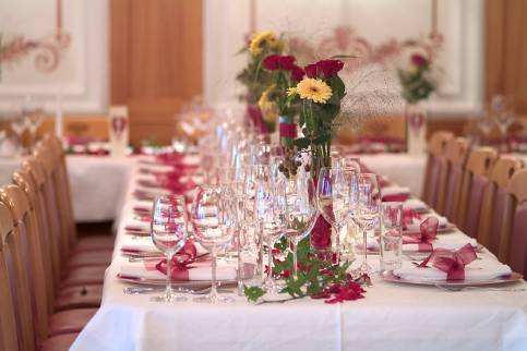 在婚礼现场部署中,餐桌是和宾客打仗最亲昵的地区,因此餐桌的花艺要恰如其份地陪衬现场空气。婚礼现场部署要按照婚宴大厅的高度举办调解,酒菜的桌数、餐桌的巨细也是要列入思量的范畴之内。