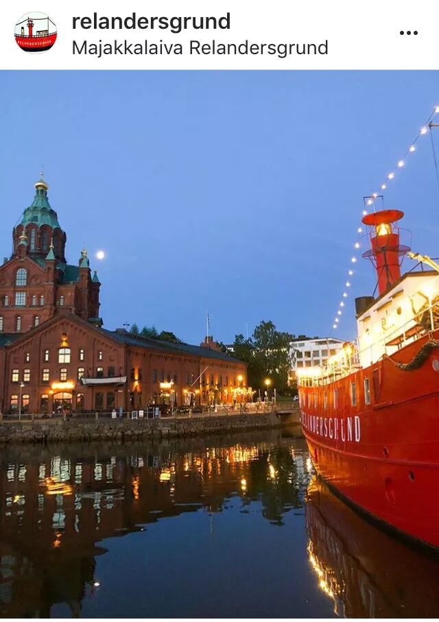 在赫尔辛基的乌斯别斯基教堂附近有一艘古老的灯塔船。这艘建成于1888年的灯塔船曾经航行于辽阔的波罗的海与赛马湖上,如今经过修复的灯塔船停靠在赫尔辛基市中心的岸边,成为了一家风格独特的餐厅。