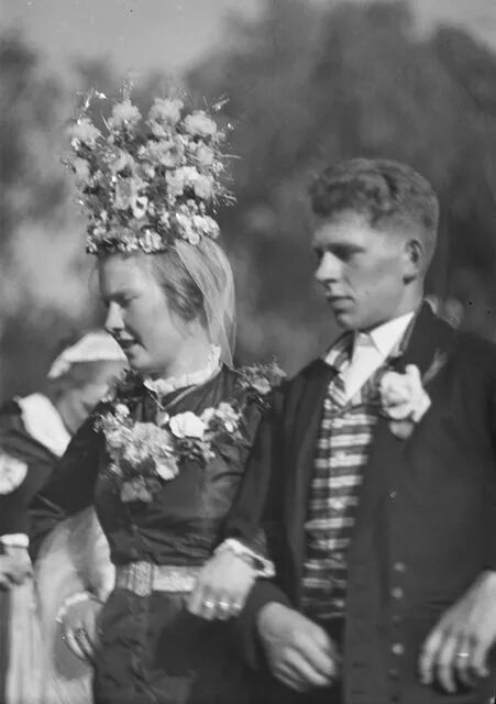 起初,芬兰新娘穿着的大多是家中代代相传的只有在重大节日才会出镜的那件最漂亮的衣服,结婚时新娘会戴上花环并佩戴精美的首饰。18世纪时,芬兰新娘流行穿着一种黑色的棉质或丝质长裙,戴一根红色的腰带。这样的着装风格在一些地方一直延续到了上个世纪。在博滕区的一些地方,那里的新娘还会在头上佩戴一个好几公斤重的壮观的装饰性头冠。