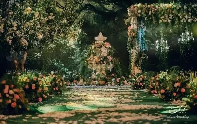为了体现婚礼独特的美学效果,大量采用手工工艺或半成品再加工的方法,在视觉上能围绕着一个主题,饱含浓浓的情感表达,让婚礼的新人和来宾都有陌生化的美感,不仅美,而且能在婚礼里找到灵魂,一个真正属于新人的灵魂。