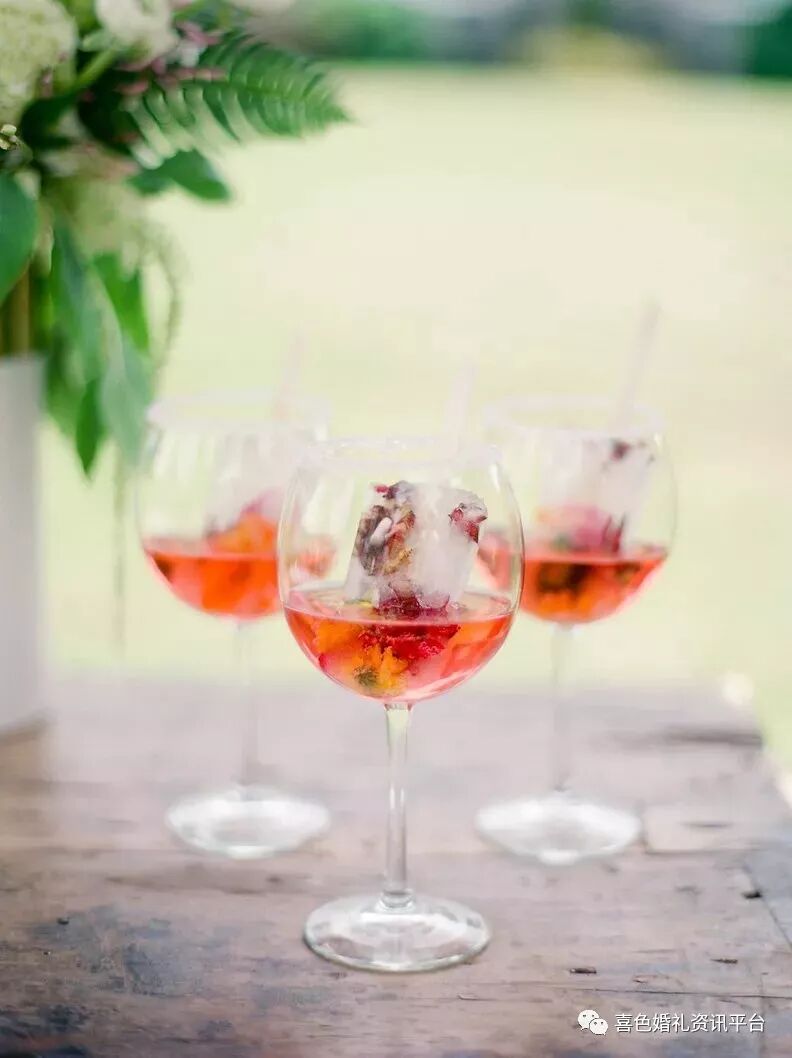 和任何派对一样,食物和饮料是每个人度过美好时光的基本要素。我们建议在婚礼开始前喝一些饮料,比如一些茶和柠檬水,这样客人们就可以在宣誓时小口啜饮(最后敬酒!)也就是说,如果你决定等到鸡尾酒时间,那就摆上一些像椰子汁这样的节日食品。
