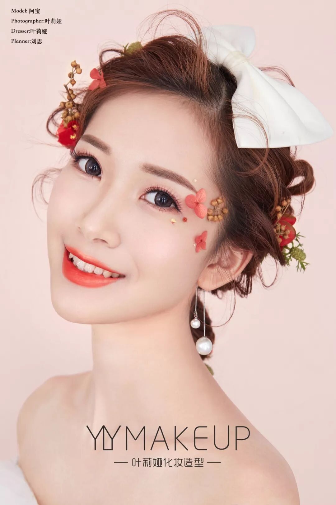 2.婚礼当天化妆师到达前请戴好隐形眼镜。婚礼前晚早睡,睡前2小时勿喝水,易浮肿,提前一个月开始您的皮肤护理工作,(去角质,补水保湿面膜,唇膜)好的皮肤状态会使您的妆面更贴,更自然。
