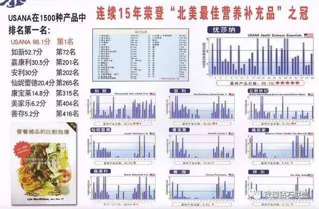 USANA 营养品连续十年,荣获加拿大『营养补品比较指导』评选为︰“冠军”、“第一名”、“五颗星”、“金牌奖”、“96.1分”的营养品。