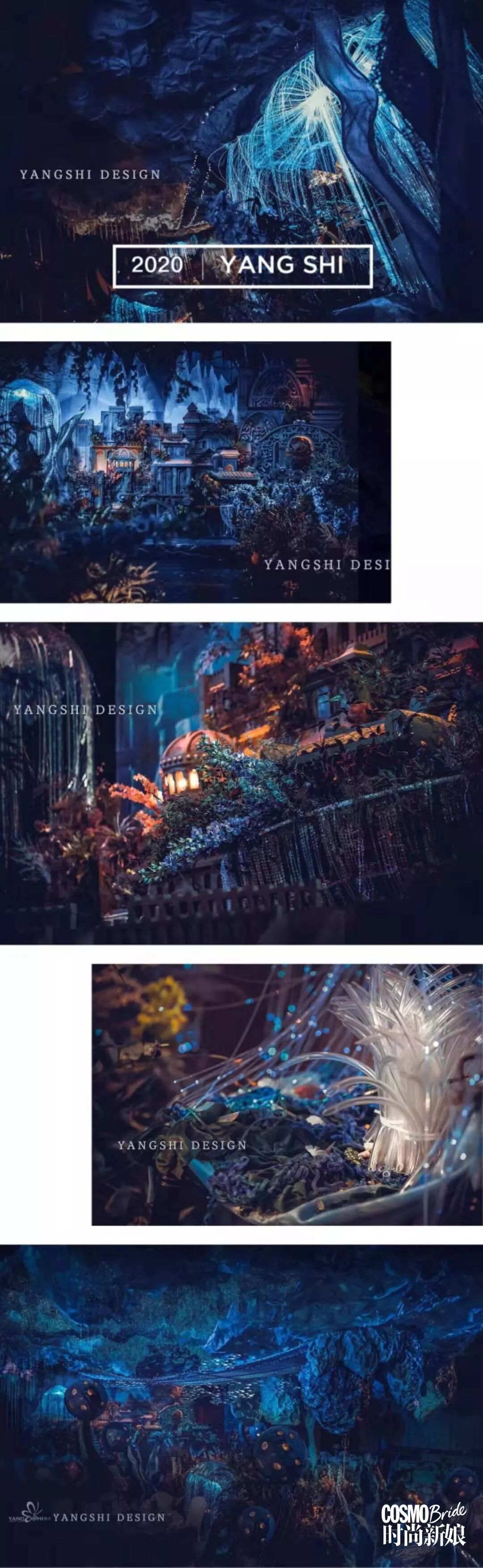 整场婚礼放眼望去都是带着神秘而深邃的蓝,这抹蓝色象征着新人之间对彼此深沉如大海的爱意,与对彼此的互相包容。