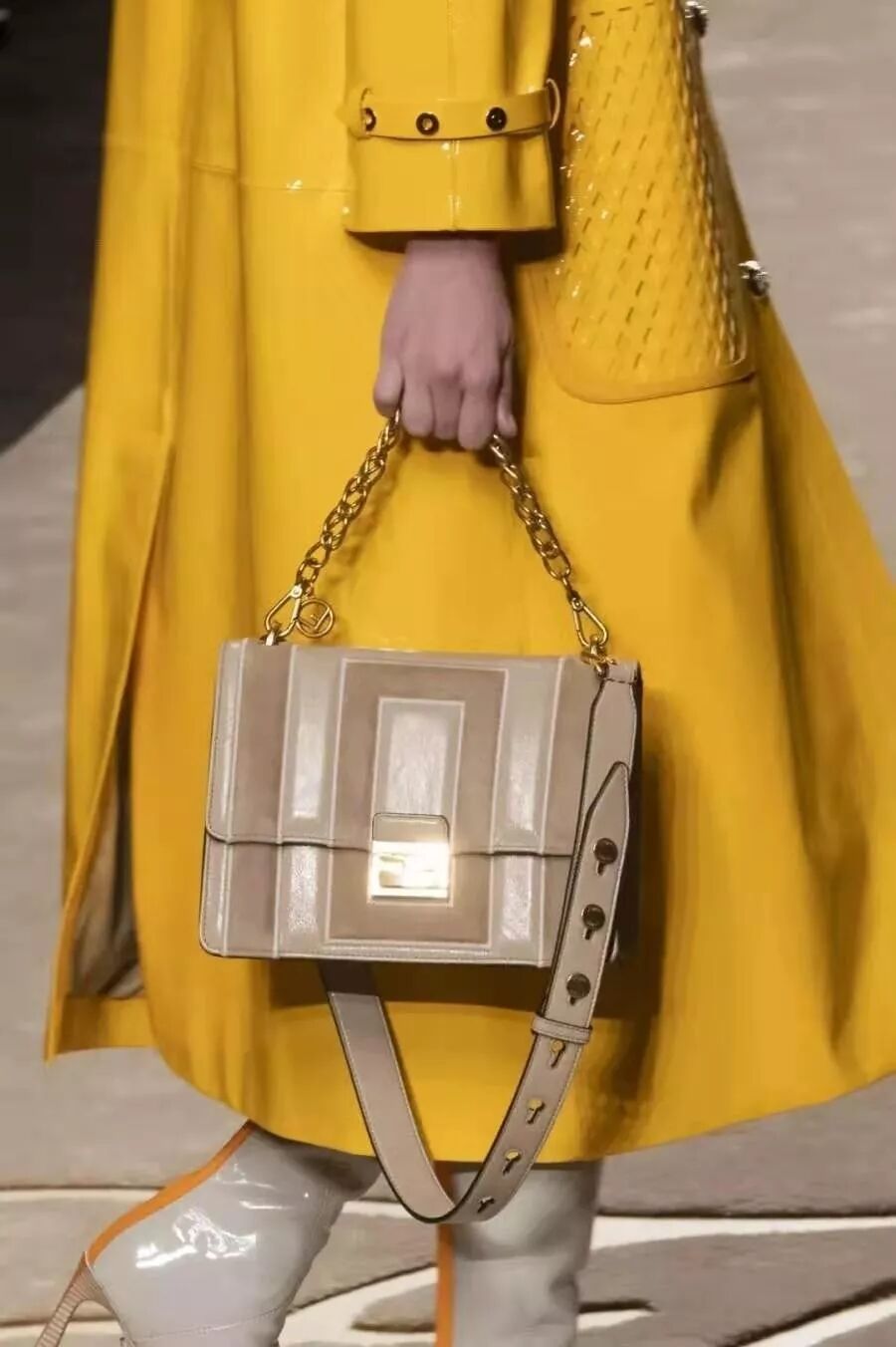 绿色在我们眼中代表平衡与生机,这款韭菜葱绿比秋冬时节常见的墨绿色活泼不少,看到它的第一眼就能让人想起下过雨的丛林,氤氲着大自然的香气。