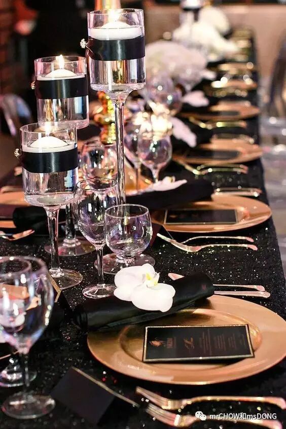 晚宴上温暖的烛光,配上妖艳的黑