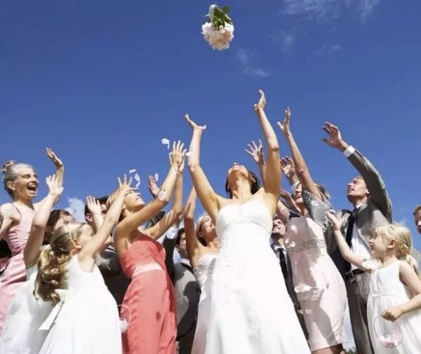 新娘面带微笑,稍微用力将花球后上方位置抛出,动作幅度不要太大,这样会显得更加优雅,捧花的弧线也会很美。