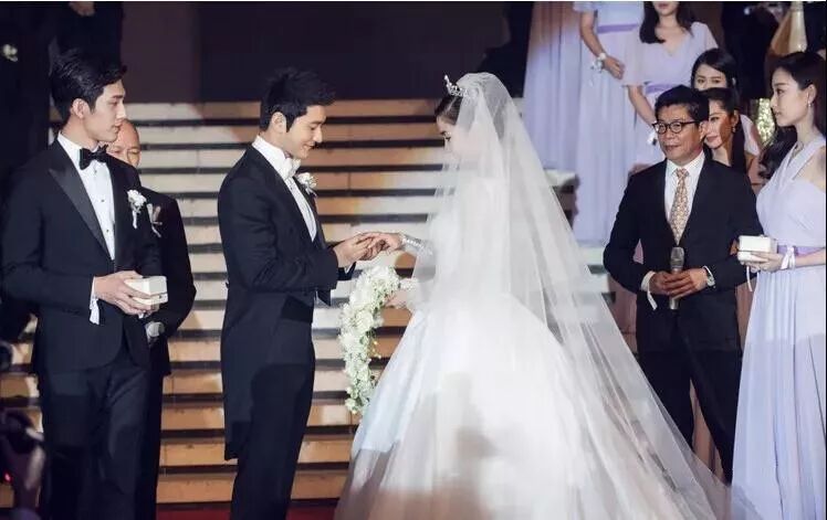 戴戒指的动作一定要慢慢的,手背呈45度面向观众,不仅让在场来宾见证整个过程,还方便拍摄,这样会显得很优雅。