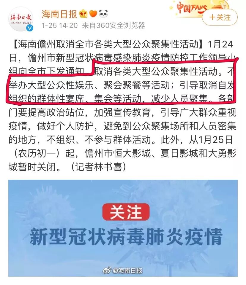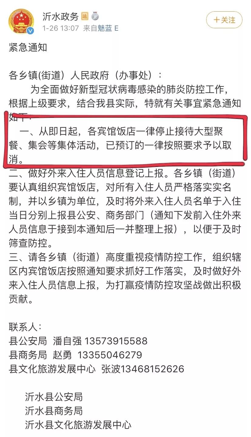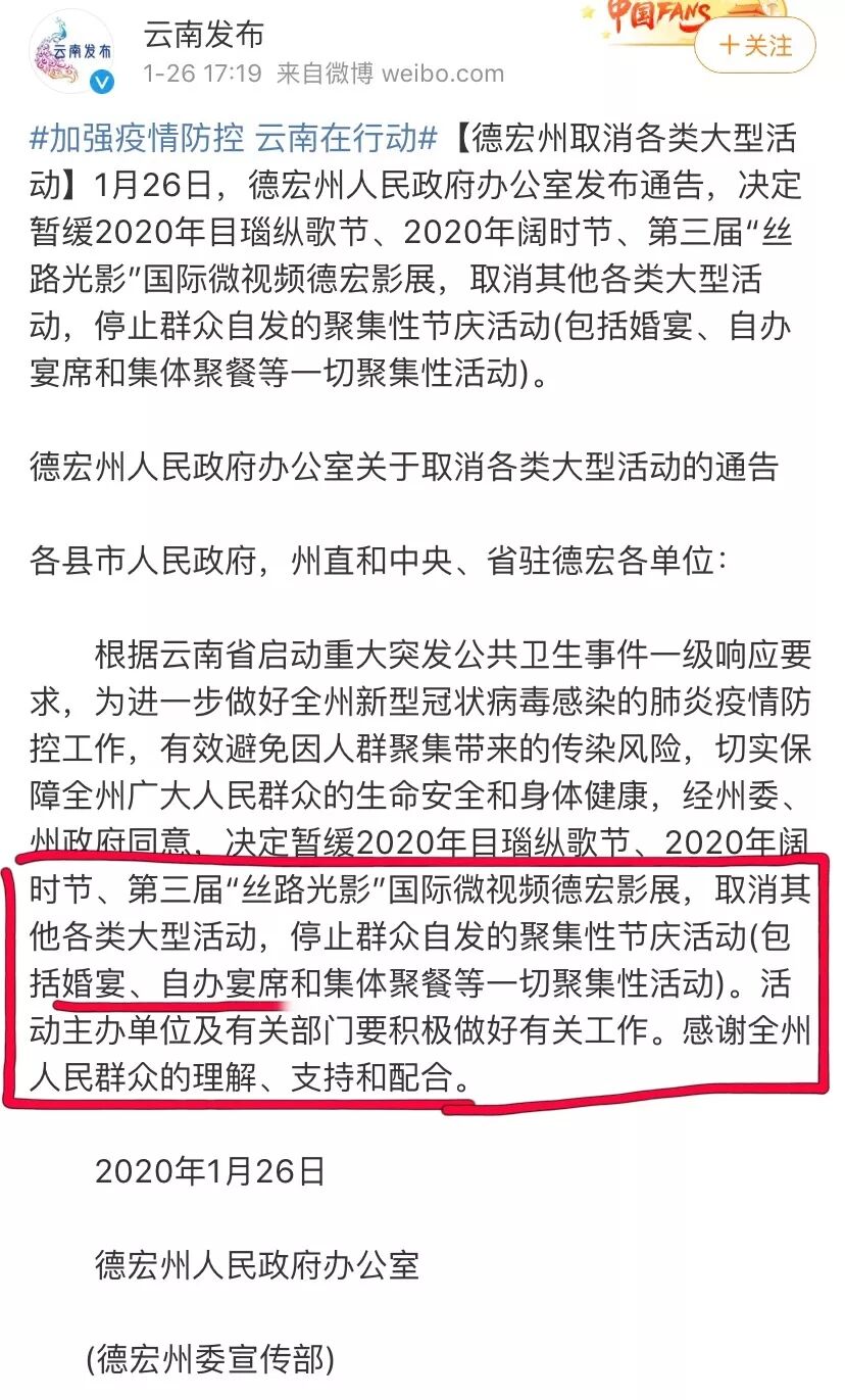 为避免疫情扩散,近期很多省市也发布了暂停大型宴会活动的通知。