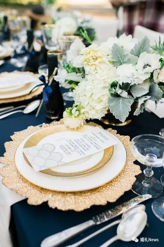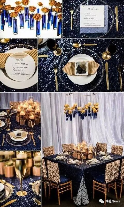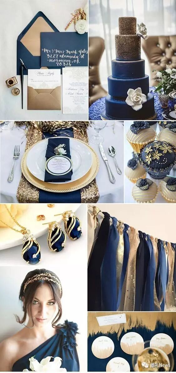 深邃的皇家蓝能为你的婚礼带来不一样的质感与大气,加入金色元素,又能改善略显沉闷的蓝色基调,让整场婚礼看起来如同皇室婚礼般高贵、典雅。今天为大家带来 蓝色+金色 的婚礼灵感,一起来看看吧〜