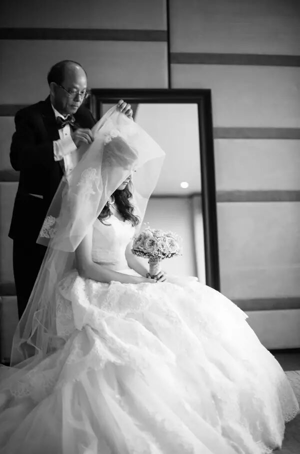 特别是在父亲将手交给新郎,自己转身走下台的那一瞬间,一向坚强严肃的父亲也可能会潸然泪下。