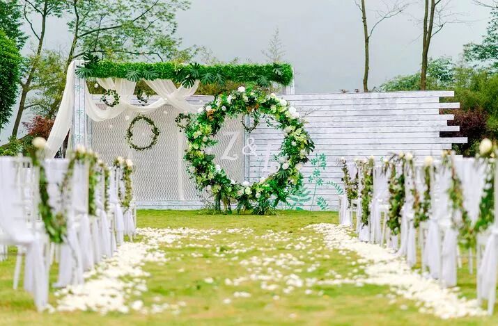 在绿植鲜花也都逐渐发芽开花,春风拂面的这个季节,是办户外婚礼的季节首选。