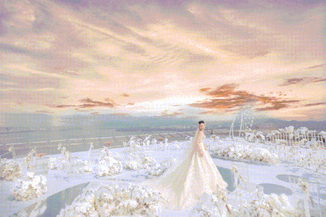 350米的云顶之上,绽放的鲜花、繁重的铁艺、阴晴不定的天气,火辣的太阳与狂热的风交织,每一处布景与搭建,都凝结着蔷薇婚礼企划每一位执行人员的汗水与努力。