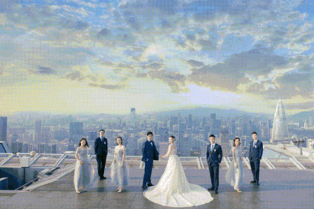 顶上婚礼,为爱相遇,伸手可触天空,云天逐风下美好的誓言正在发生。