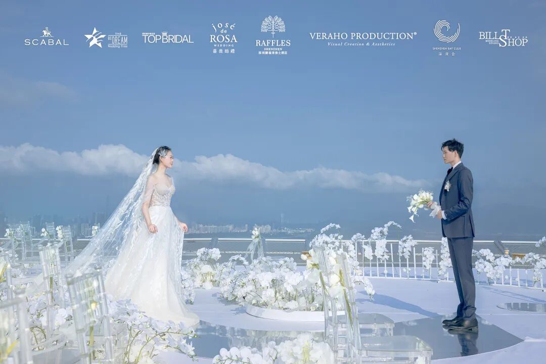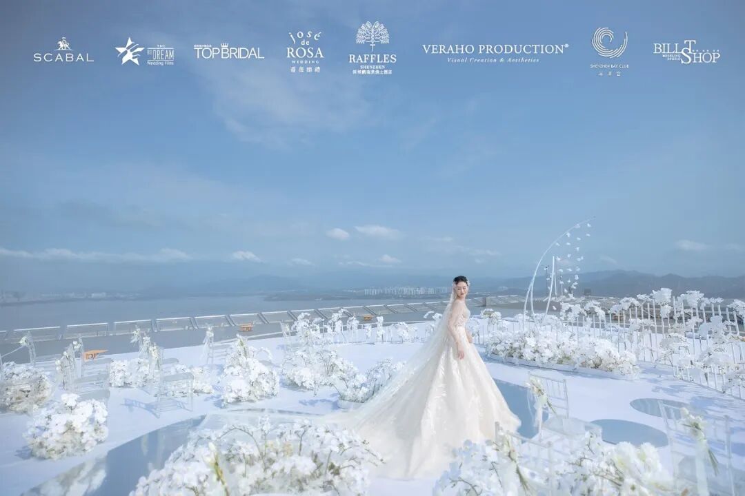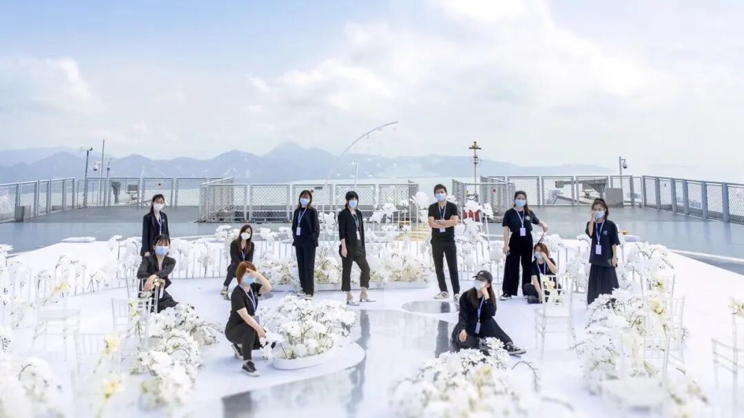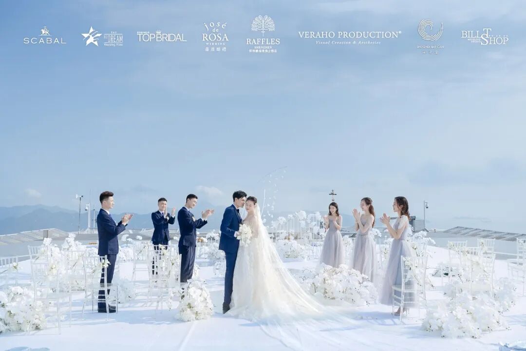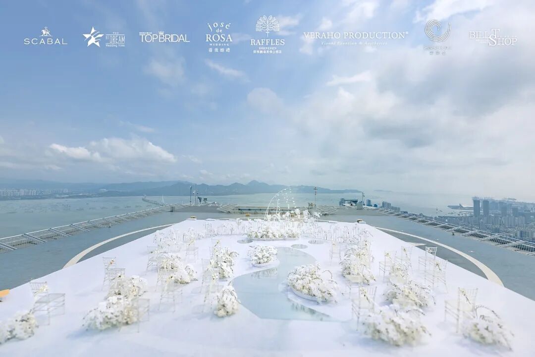 在2020年万物复苏的三月,蔷薇婚礼企划携手深圳莱佛士酒店等多家品牌为万千女孩实现了一场350米高空之上的云顶婚礼梦境。