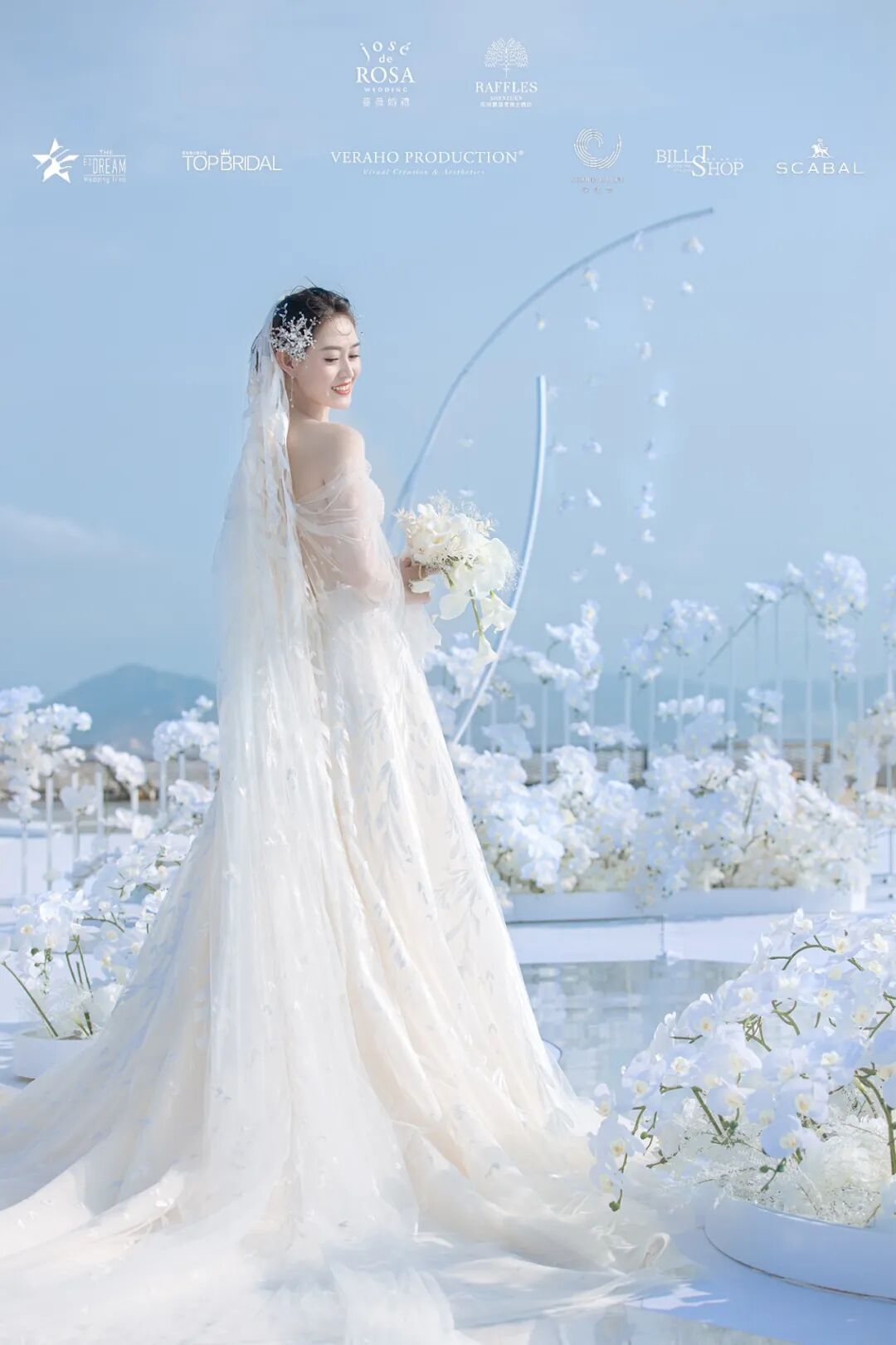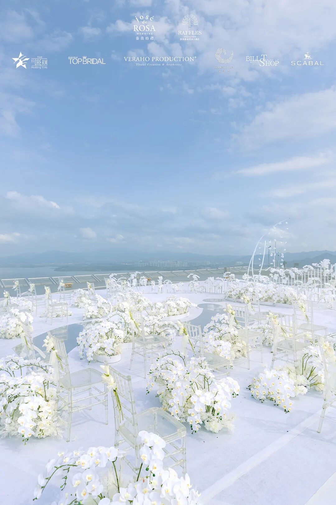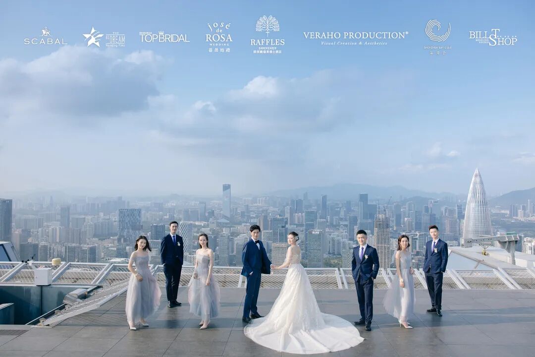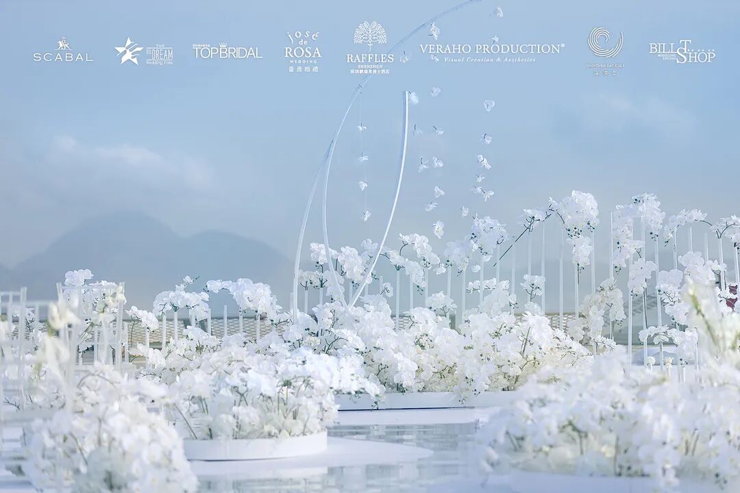 在2020年万物复苏的三月,蔷薇婚礼企划携手深圳莱佛士酒店等多家品牌为万千女孩实现了一场350米高空之上的云顶婚礼梦境。