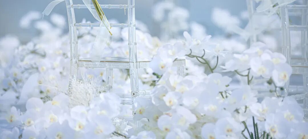 一尘不染的纯白,缀以或含苞待放,或绝美盛开的花,纯粹又净雅。