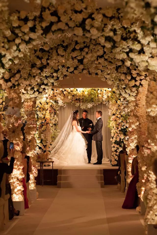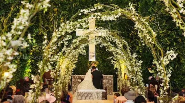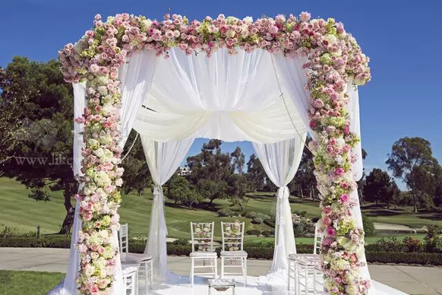 所谓的花亭,并不是指有花的亭子。而一个婚礼上的拱门、仪式区花亭等的统称。