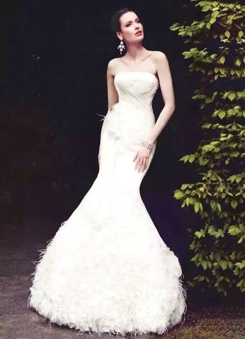 比如这样的鱼尾绸缎婚纱▼