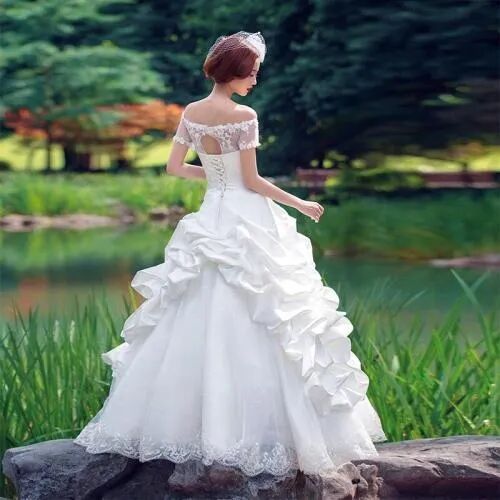 不过长长的拖尾并不适合草坪婚礼,