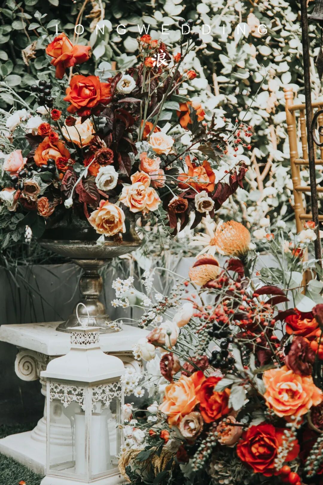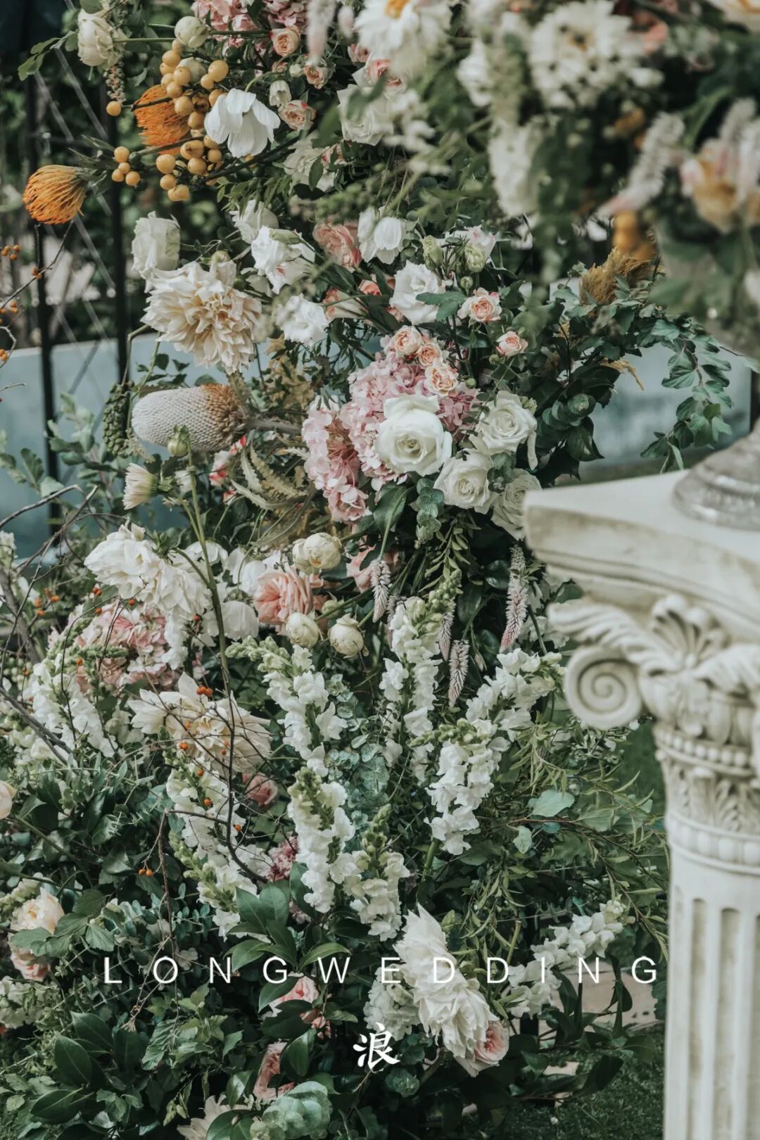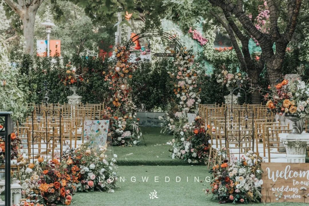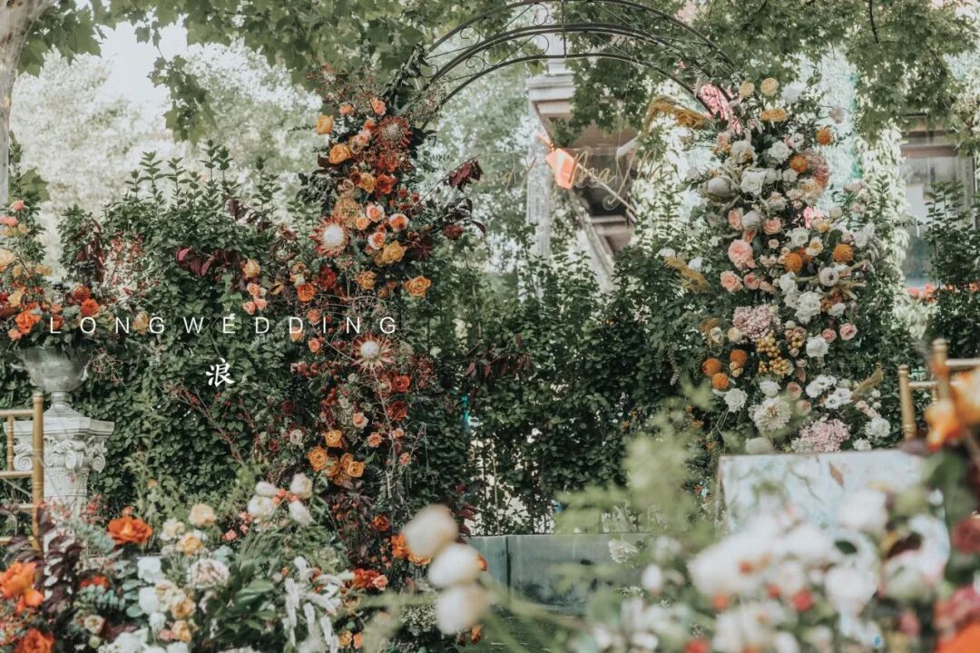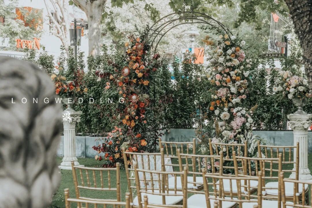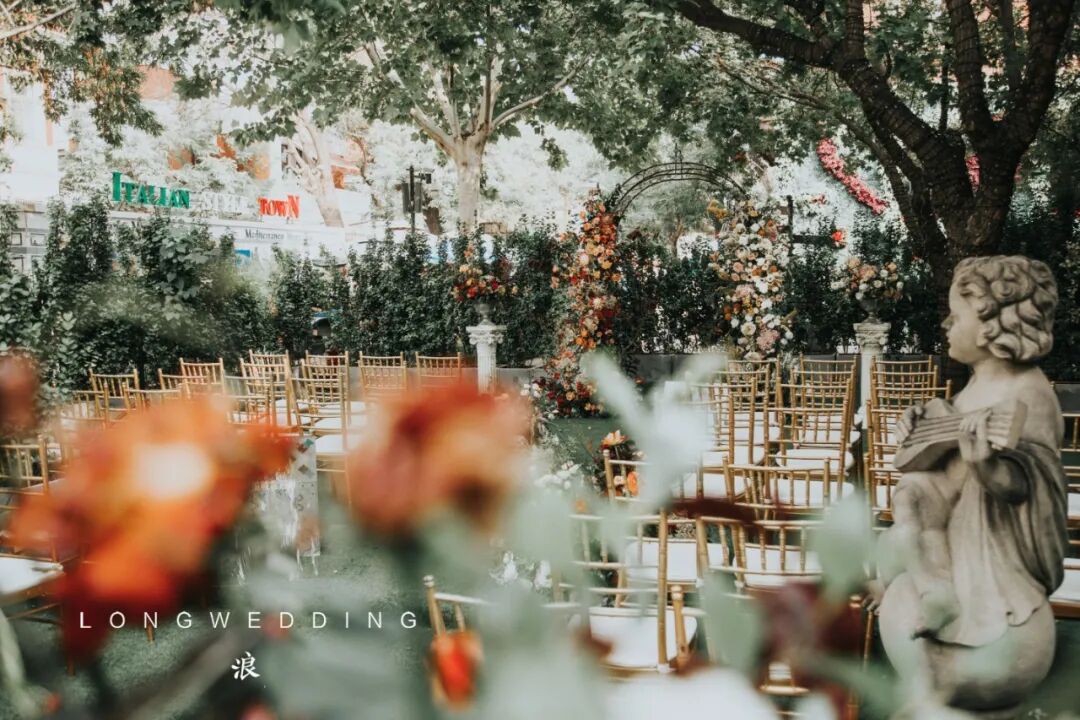 因为婚礼场地是一个著名的法餐厅,从建筑到装饰都是浓浓的法式风情,所以我们想到在这个场地,可以打造出一个法式的小花园。