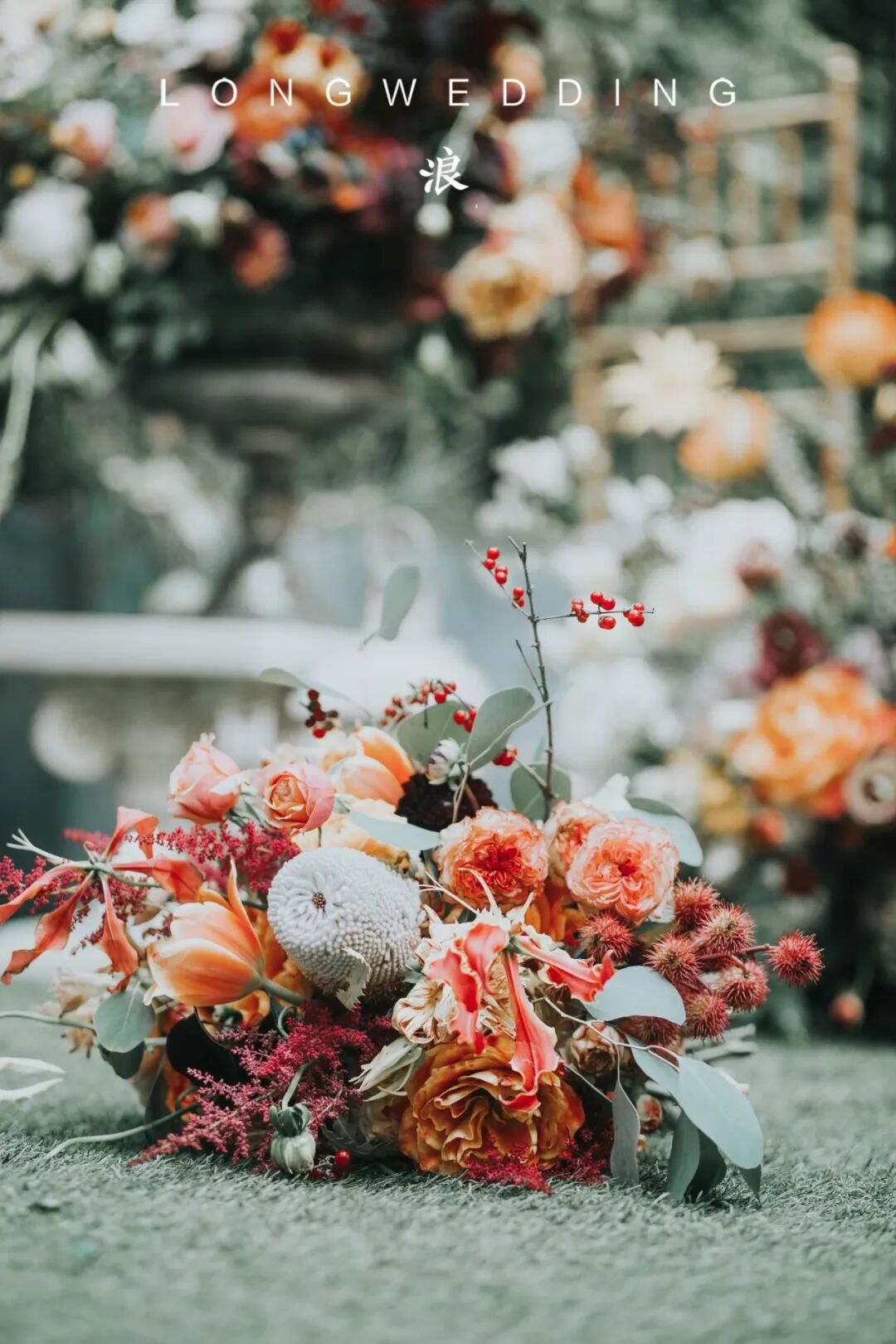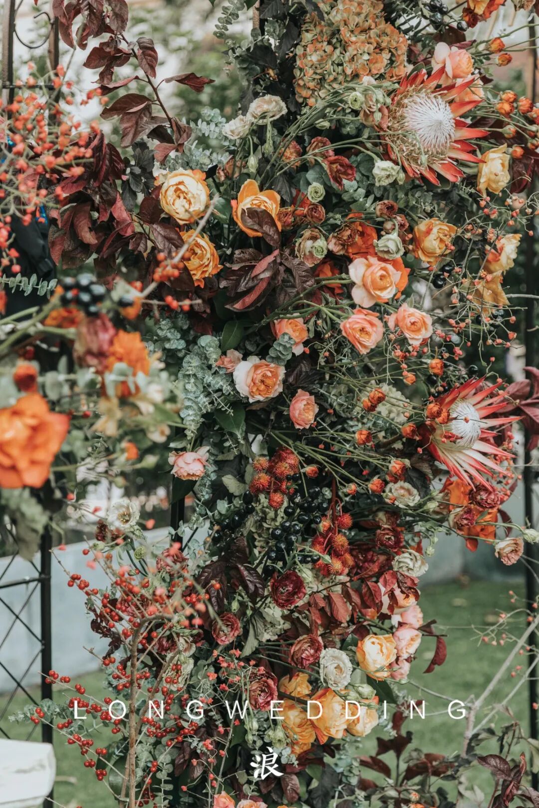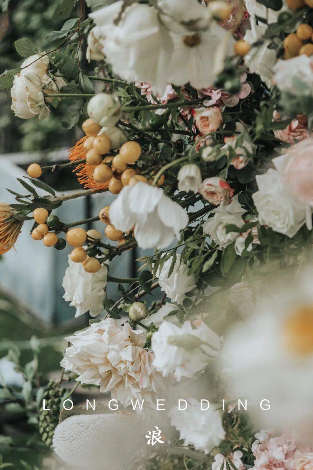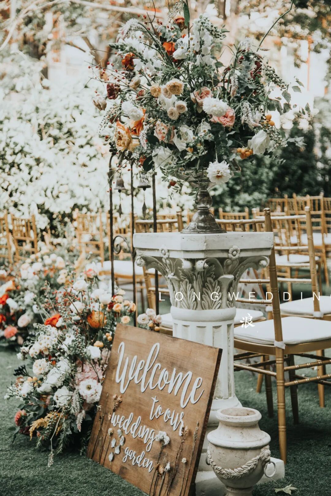因为婚礼场地是一个著名的法餐厅,从建筑到装饰都是浓浓的法式风情,所以我们想到在这个场地,可以打造出一个法式的小花园。