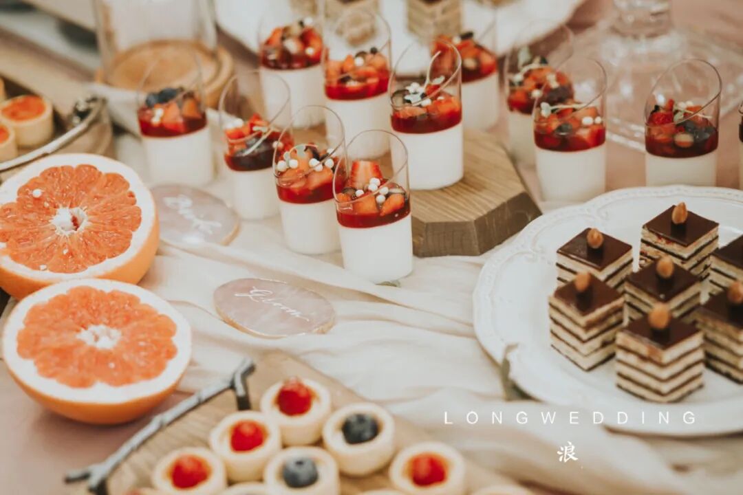 这场婚礼的新人,是一对非常有生活情调的人,平时在家喜欢种花养草、烹饪、烘焙……所以在婚礼现场,我们也藏进了很多有爱的小细节。