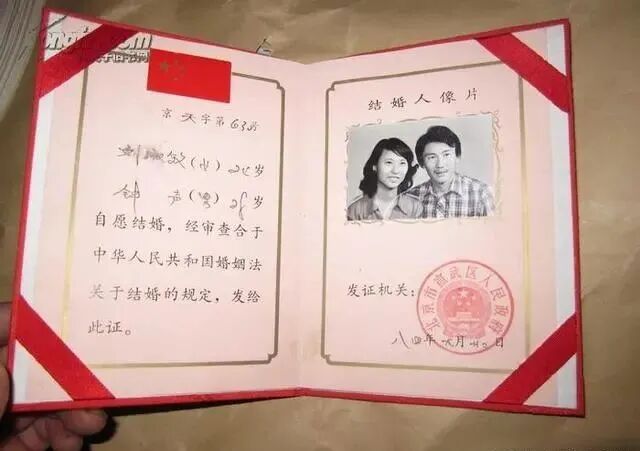 80年代,随着物质生活水平的提高,北京引进了彩色照相技术,开始进入彩色婚纱照的时代。结婚证,成为真正意义上的法律文书,并