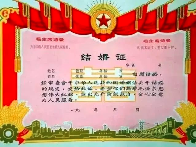 结婚证上增加了毛主席的头像和语录。