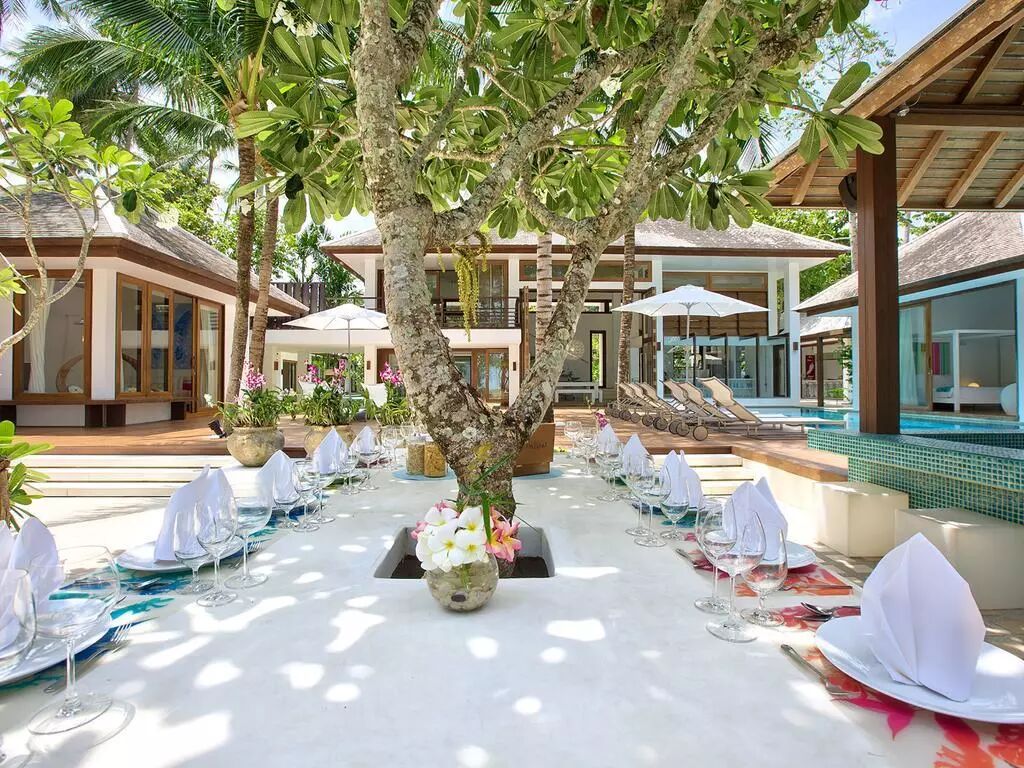 阿普尼·杜尼娅别墅满足在户外露天享受美食和娱乐的需求,宽敞的别墅露台完美地坐落于别墅异域风情的水榭花园中心,在举办婚礼的同时一览无余地欣赏泰国湾美丽的海景。