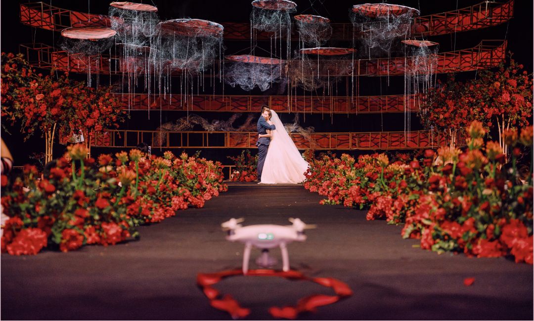 现在婚礼当天,也有很多新人用无人机/直升机送戒指哦!
