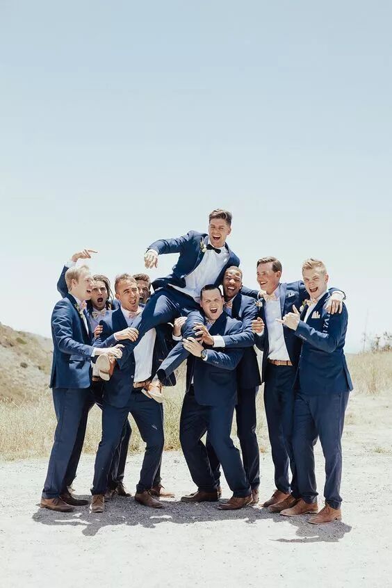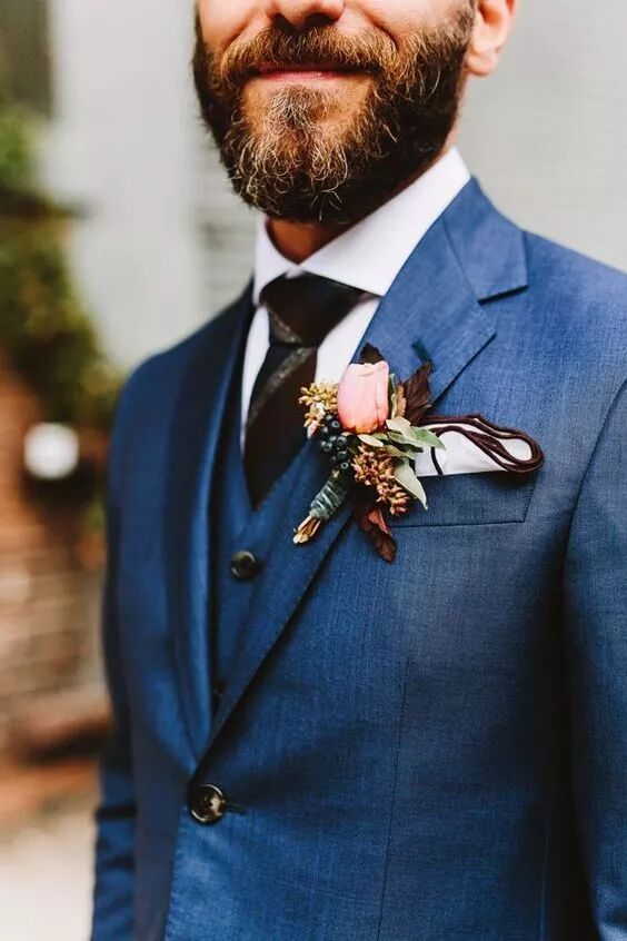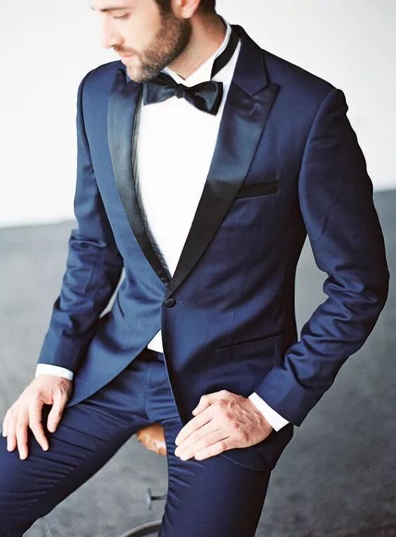 干净利落的线条和藏蓝色调,不会太无趣,且和新娘白色婚纱相配很和谐。不会太跳跃,通勤也能穿。