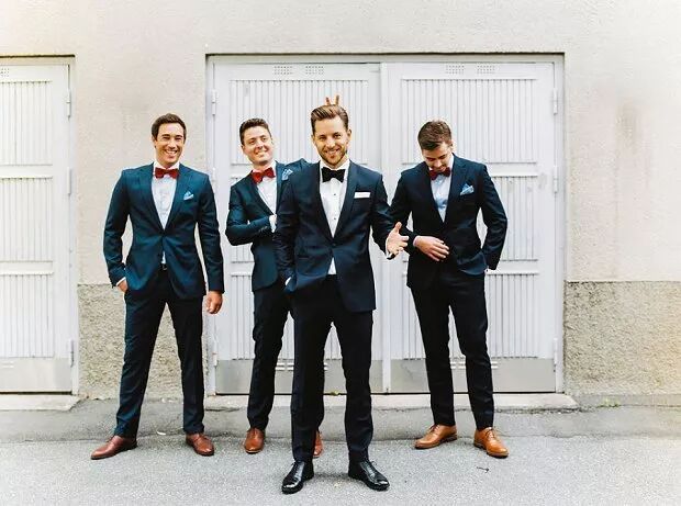 决定西装经典或俗气的关键点:面料。只有光泽好的毛料,才能在婚礼炫目的灯光下凸显新郎的高端品味。