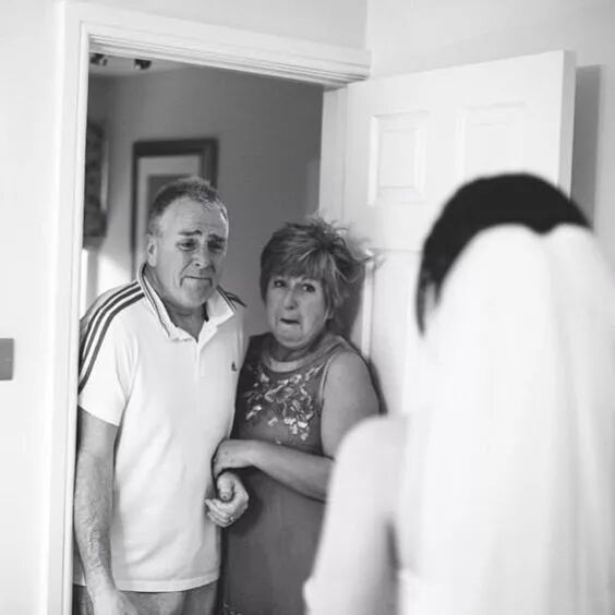 在婚礼上布置一块属于和父母们的照片墙,可以是你们的合照,也可以是父母自己的合照