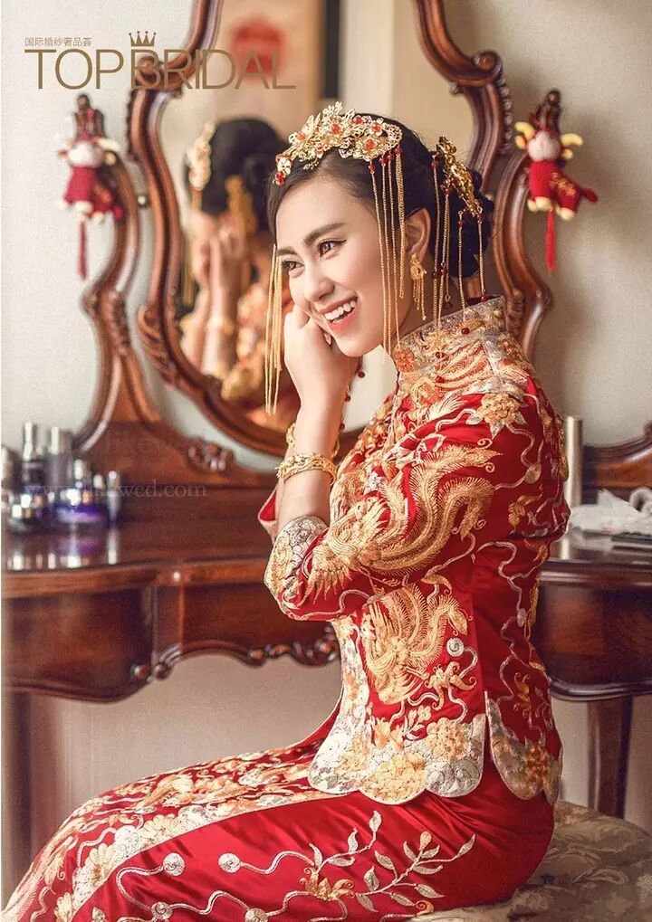 送三金是由传统婚礼流传下来的习俗,所以,如果新娘想要在婚礼上穿戴三金,素材君建议最好举行中式婚礼,或者在出门、敬酒环节搭配中式礼服。下面,我们一一来说说吧。