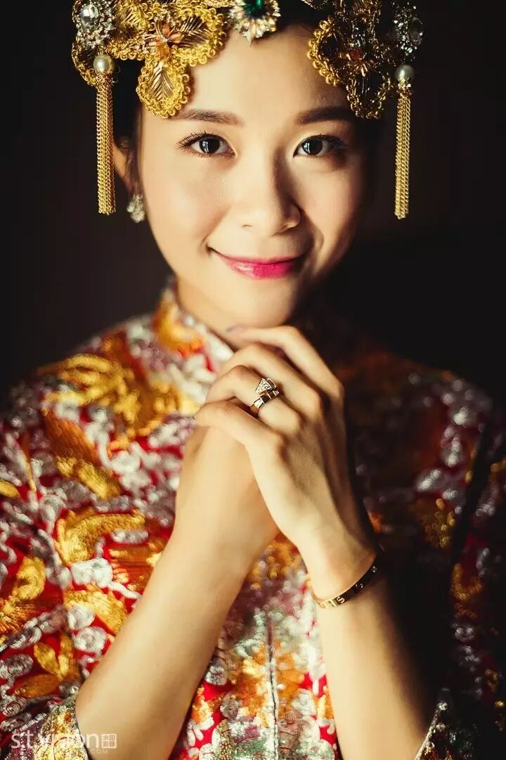 如果是戒指已经买了比较复古的款式,最好搭配中式裙褂或秀禾