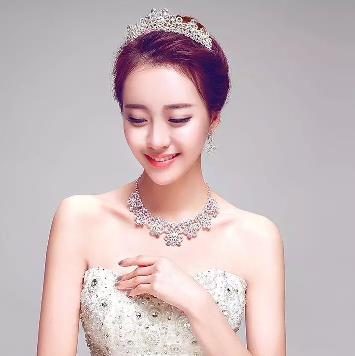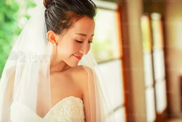 耳环最好选择色彩不会太突出的,不然会在白色婚纱和黑色头发之间显得格外不协调。中国新娘的脸型大多较短,不如西方人的脸型立体,水滴形或长耳环可以很好的改善这一小缺憾。同样,耳环要和头饰相搭配。