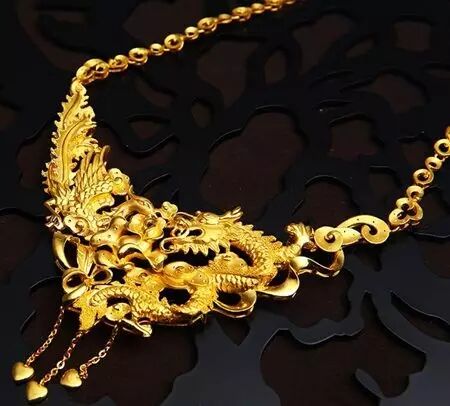 这种传统复古样式的金项链也很适合搭配中式礼服。(牡丹、凤凰之类)