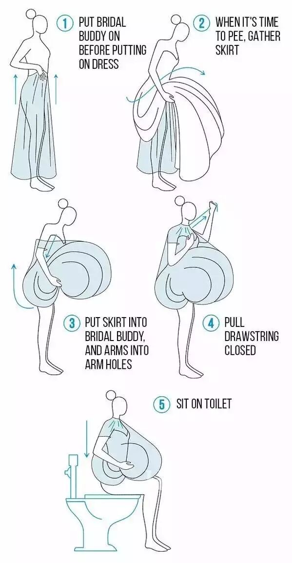 在穿婚纱前穿上,它就可以像一个大大的收纳袋一样,把婚纱裙摆全都收到它的“口袋”里!