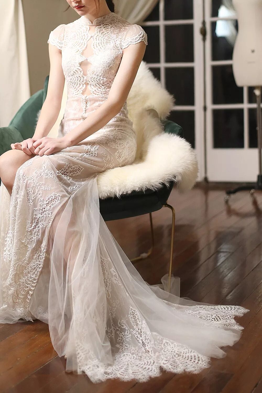 但是,必须要请一位伴娘帮忙捧着后摆哦~